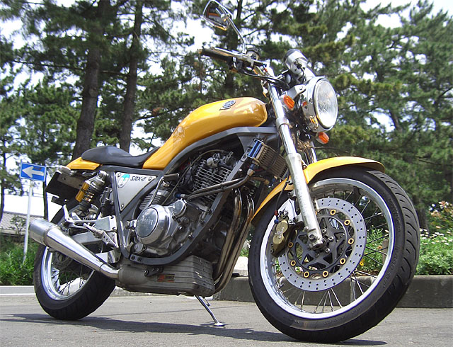 クラシカルなスポークホイールと、みかん色の外装は SRX 乗りの間でも有名な 1台です。