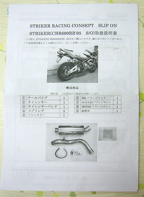 取説、バッフル付き、カウル用耐熱布のみ欠品
