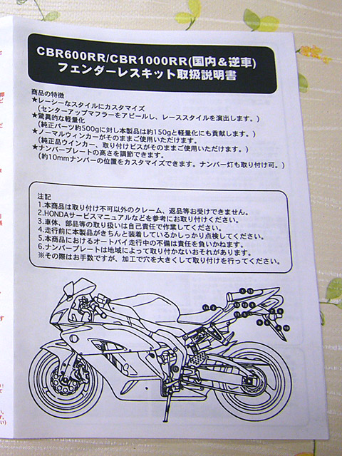 > フェンダーレスキット for CBR600RR/CBR1000RR
