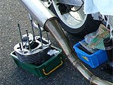 傷だらけの前のシリンダー & ピストン持ってきていればなぁとか思いつつ、回収車に揺られてテントまで。
