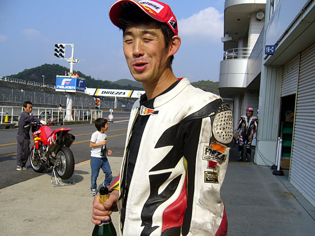 しまった場所が無い!と焦りつつ巡回していたら、車検場前あたりにセクシー選手が場所取りしてくれていました。