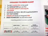 ・従来の鉛バッテリーの1/3くらいの重量で、交換するだけで2〜3kgの軽量化(笑っちゃうくらいの軽さです!)