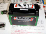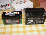 車体はGSXR600 装着バッテリーはFTX9ーBSで150×87×H105重量2.9kg、交換するのはALIANT X2で148×67×H85で重量0.88kgです。