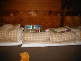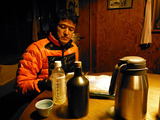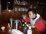 小屋の布団はフワフワの羽毛ふとんだし、サービスで焼酎は出てくるし、快適な小屋だった。