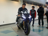 ワタシがR1Mに跨っている写真は、何も知らないバイク馬鹿がニコニコと話題のマシンに跨っているだけに見える。。。