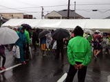 スタート前にすでにびしょ濡れ、靴までグショグショの人多数のマラソン大会