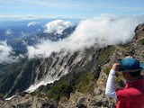 強風だが、上から大雪渓を見る 白馬山荘でアイスタイム♪