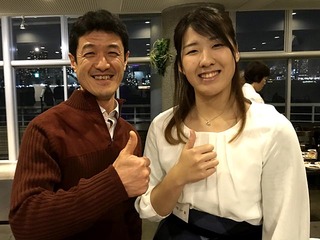 赤ら顔のレーシングショップオーナー諸氏に囲まれて大人気!来年のサポート話には恵まれたでしょうか?