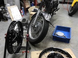 ハブとリムはブラックに塗装して新しいスポークとタイヤを組付け